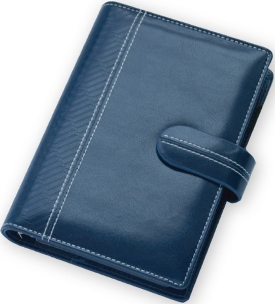 Fényes műbőrből készült, varrással díszített, mágnessel záródó kalendárium. Szitázással, présfólia- és vaknyomással emblémázható.