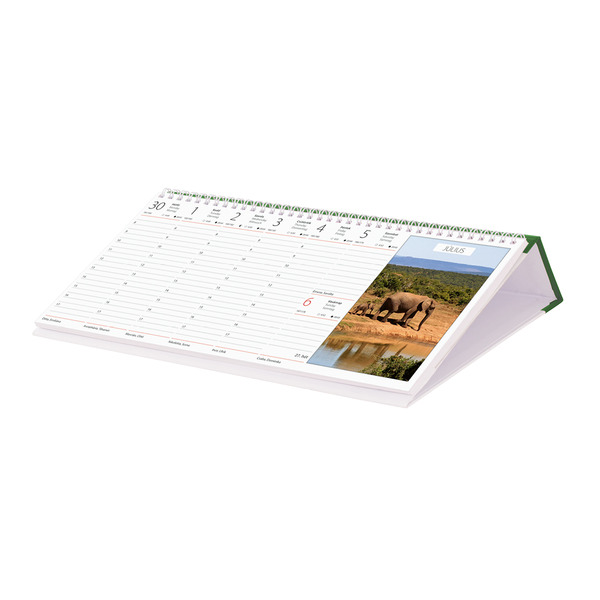 Asztali naptáraink többféle típusban és színben kaphatóak. Gyártóként különösen nagy figyelmet fordítunk arra, hogy asztali naptáraink megbízható, stabil alátámasztása egyúttal biztosítsa a jól kihasználható, kényelmes író felületet is. Ezért a lekerekített sarkú álló hátkarton, illetve a 4 részes, masszív fekvő háttábla egyedülálló technikai megoldásokat jelentenek a hazai piacon. A kép nélküli naptárakon a napi teendőkön felüli extra feljegyzésékhez nagy felületű, jegyzetelésre alkalmas külön rész lett kialakítva.