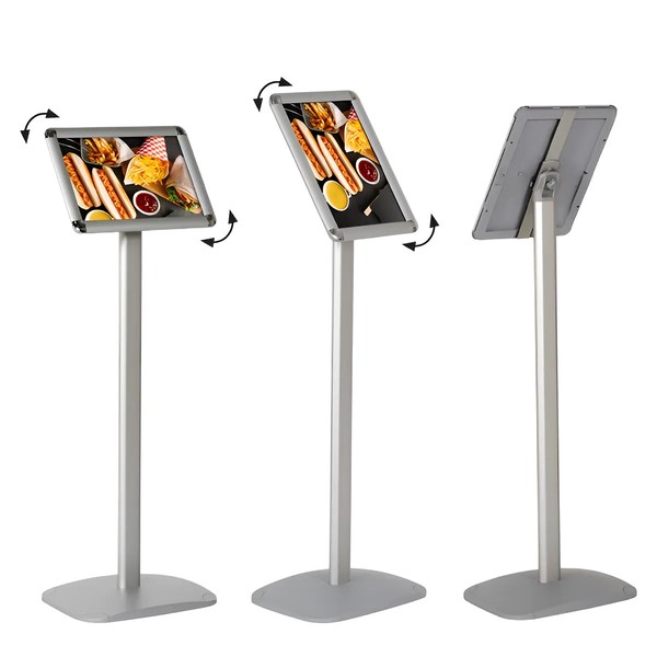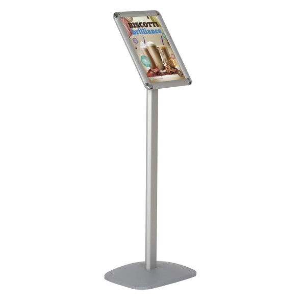 Dekoratív infóállvány A4-es lekerekített sarkú, aluminium kerettel
