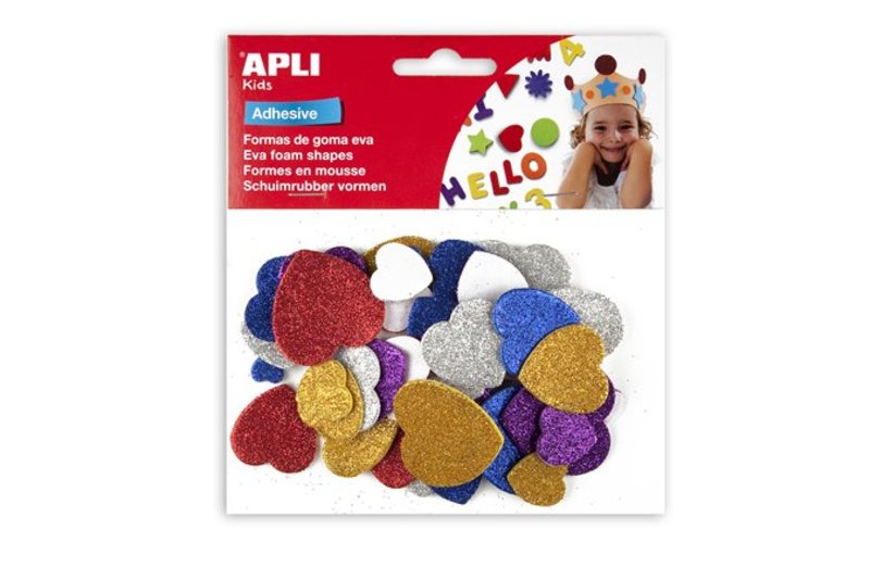 Dekorgumi szívek, glitteres, APLI 13484 öntapadó, vegyes színek