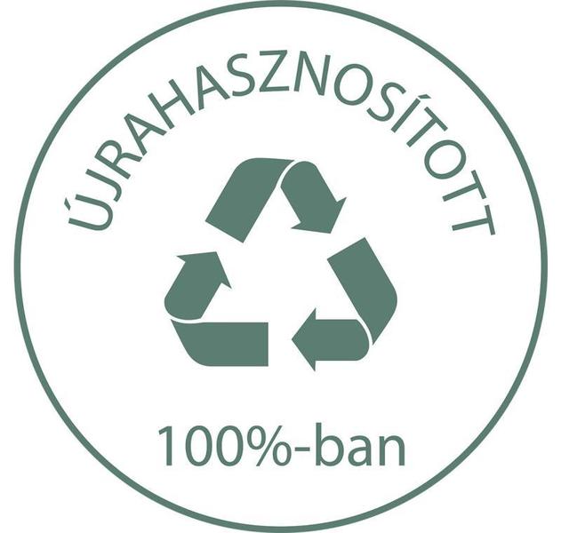 100% újrahasznosított papír cimke, klórmentes, környezetbarát ragasztóval, még a csomagolás is újrahasznosított kartonból készült.