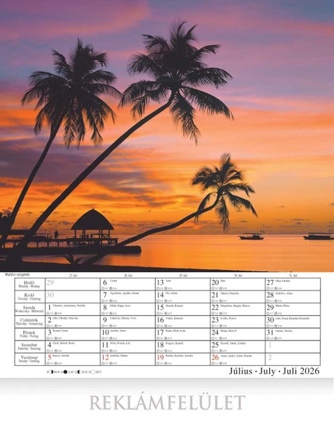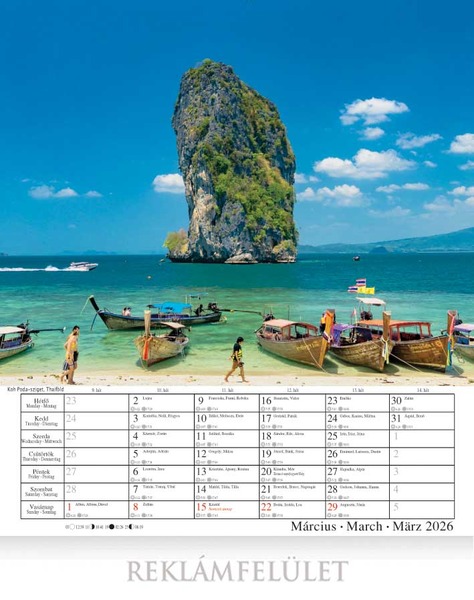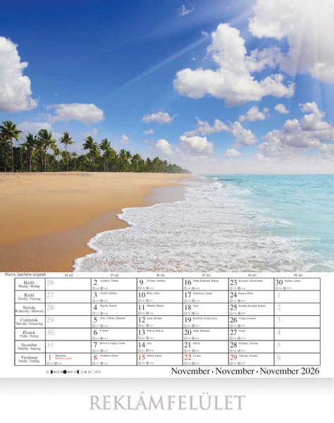Falinaptár 33x34 cm, álló, Tengerpartok 2026.