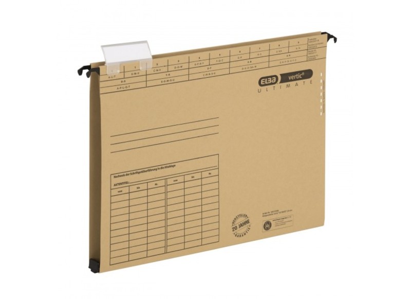 Nagyobb terjedelmű, vastagabb iratok egy helyen történő tárolása függő rendszerben. Tetszőleges helyre helyezhető címketartó. Kétféle gerinc vastagság, mindig a használatnak megfelelőt válasszuk. 240 g nátronkarton.