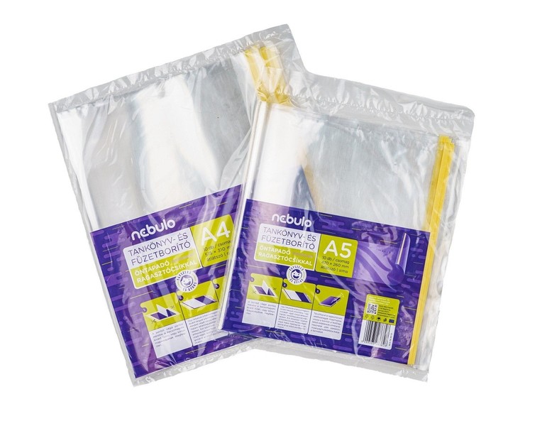 Füzetborító A4, PP, NEBULO, 10 db-os, ragasztócsíkkal, víztiszta