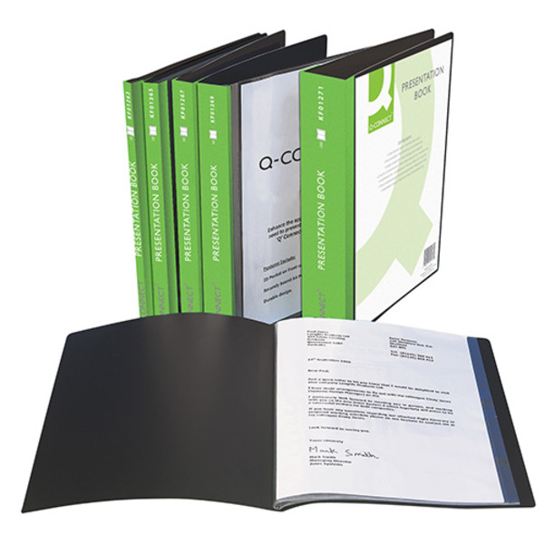 Iratvédő mappa A4, 10 lap, PP, Q-CONNECT KF01263, panorámás, fekete