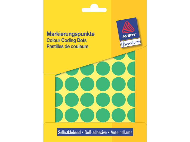 Körcímke 18 mm, AVERY 3376, öntapadós, kézi, 1056 db, zöld