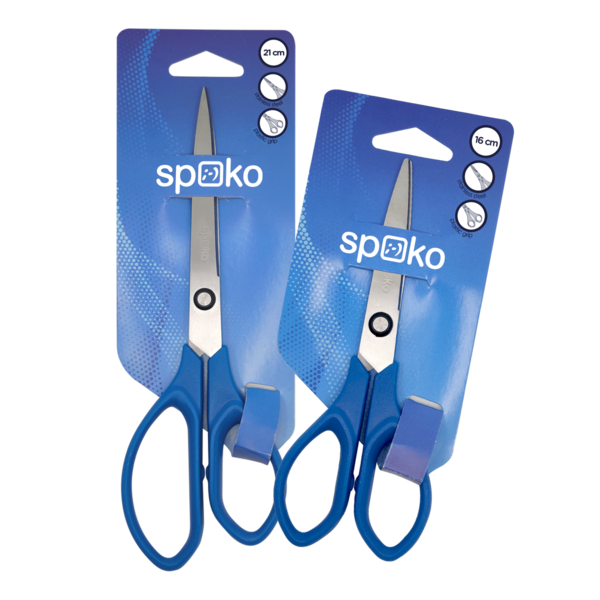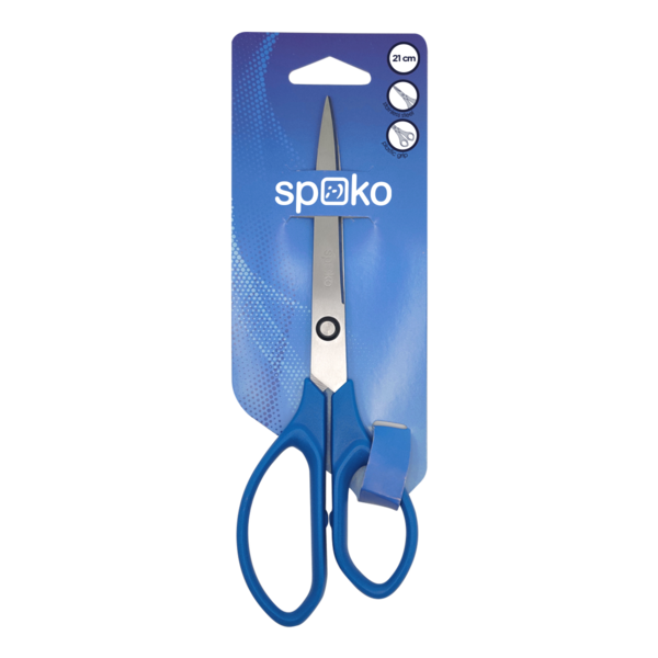 Olló 21 cm, SPOKO 0544 Eco, aszimmetrikus, v.kék műanyag fogórész