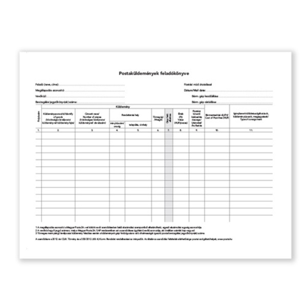 Postaküldemények feladókönyve A/4, 150 lapos, fekcő, C.7976-12/UJ