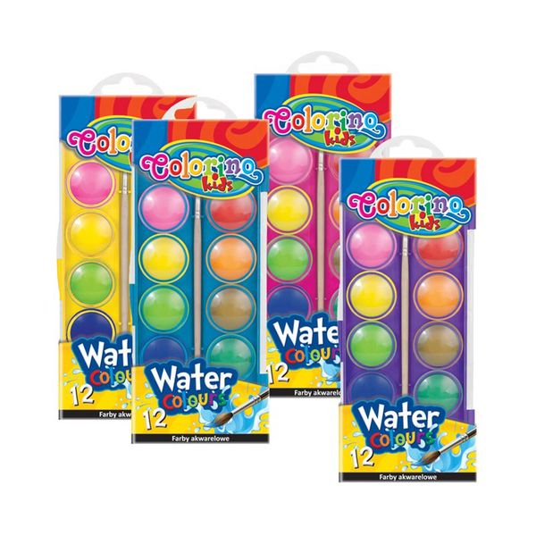 Vízfesték 12x30 mm, COLORINO Kids, + 1 db ecsettel, 12 különböző szín