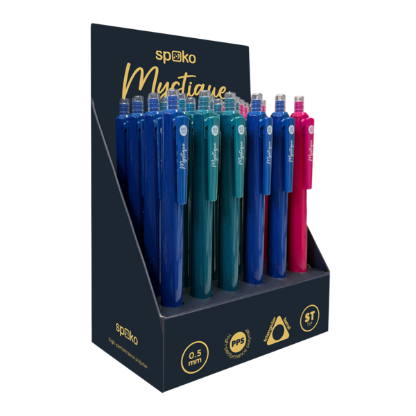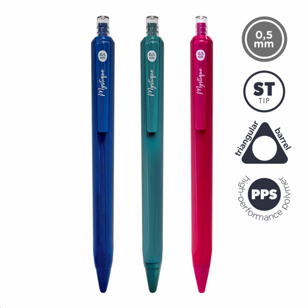 Luxus zselés toll fényes felülettel és feltűnő színárnyalattal. A robusztus és tartós, kiváló minőségű műszaki polimerből készült test szilárdságával, hosszú távú tartósságával és minimális kopásával (pl. karcolások) tűnik ki, még a mindennapi használat során is. Az eredmény a toll tökéletes megjelenése hosszú távon. Az ergonomikus háromszög alakú forma kényelmes és stabil fogást biztosít. Színben összehangolt műanyag klipsz és kapcsoló mechanika, átlátszó kupakkal kiegészítve. Nagy kapacitású zselés tollbetétje egyedülállóan vékony és tartós "ST" heggyel sima írást eredményez.