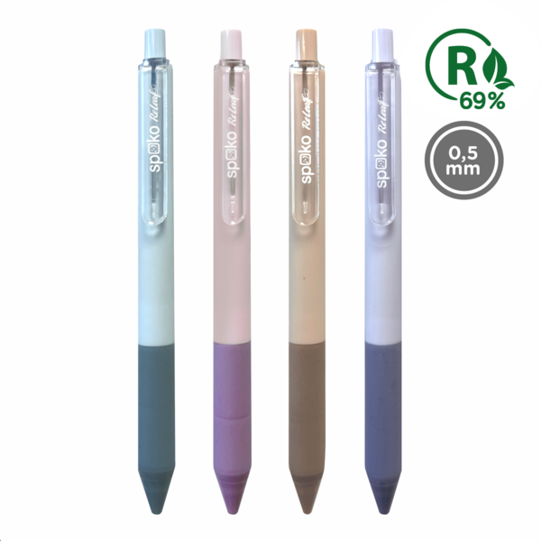 Természetes elemek ihlette, lágy, visszafogott színekben pompázó zselés toll. Monokróm, matt test csúszásgátló fogózónával. Átlátszó, műanyag klipsz fehér, nyomtatott logóval és a test színével megegyező nyomógomb. Nagy kapacitású zselés tollbetét egyedülállóan vékony és tartós "ST" heggyel, amely tiszta írásképet, valamint könnyed és sima írásérzetet biztosít. 69%-ban újrahasznosított műanyagból készült.